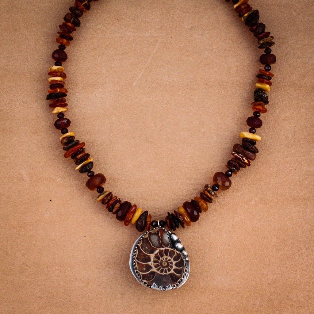 Walking with the Ancestors~REVERSIBLE Amber and Ammonite Necklace